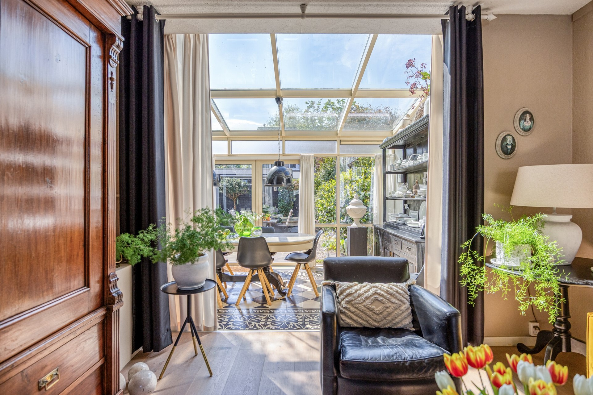 • Prachtige serre met Portugese tegels, met vloerverwarming en openslaande deuren naar de tuin