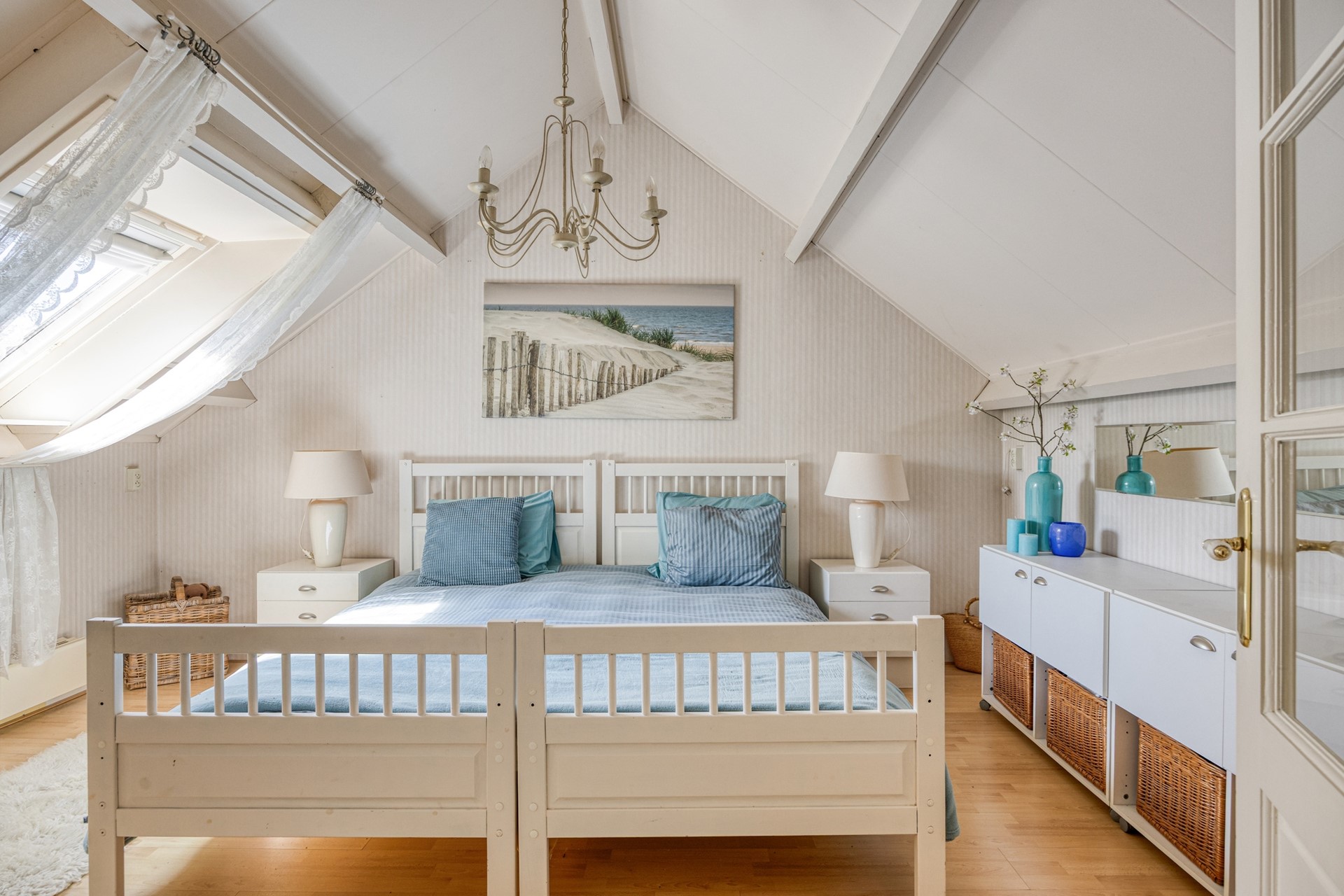 Hier vind je een ruime vierde slaapkamer met veel lichtinval. Op de overloop is plaats voor wasmachine, droger en cv-installatie.