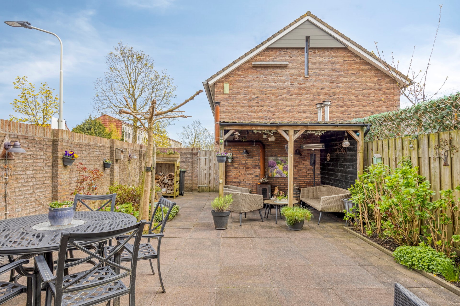 De woning beschikt over een verzorgde achtertuin met een sfeervolle overkapping – perfect om het hele jaar door buiten te zitten. Daarnaast is er een praktische berging aanwezig. De openslaande deuren naar de tuin zijn voorzien van een hordeur (nieuw). Er is een elektrisch zonnescherm aanwezig over de gehele achterzijde. Er is een waterkraan aanwezig met een afvoerput.