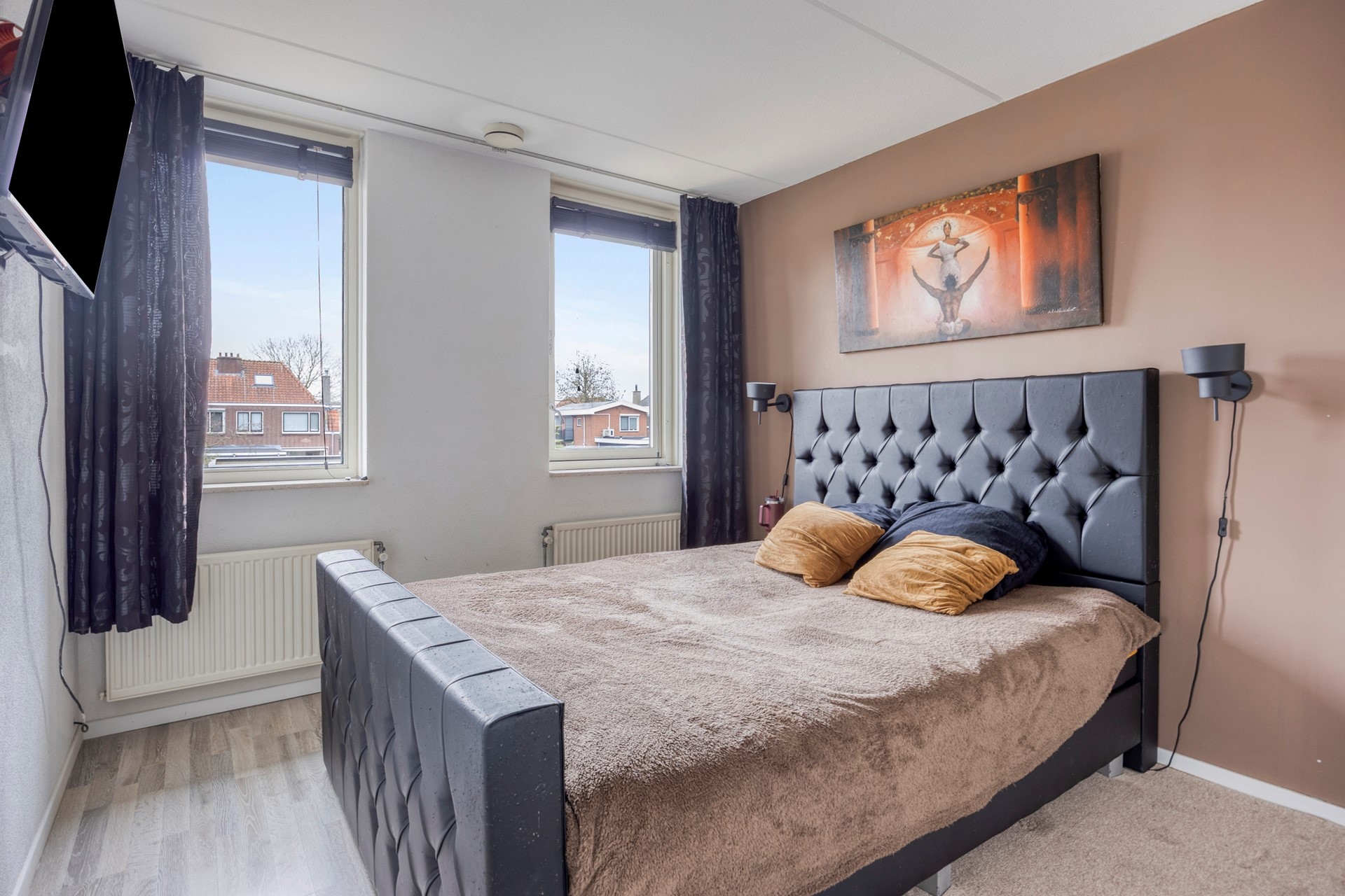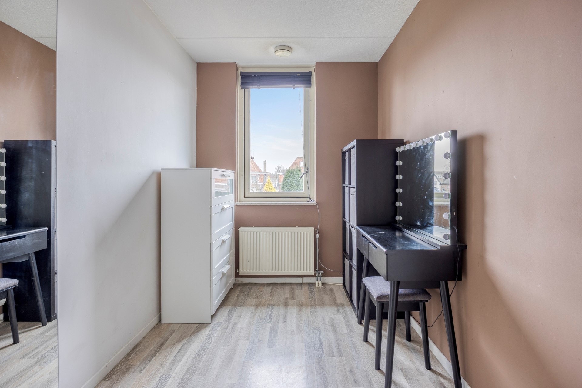 Verrassend ruime verdieping met grote overloop en twee extra slaapkamers, waarvan één met dakkapel. Hier bevinden zich ook de wasmachineopstelling en de CV ketel.