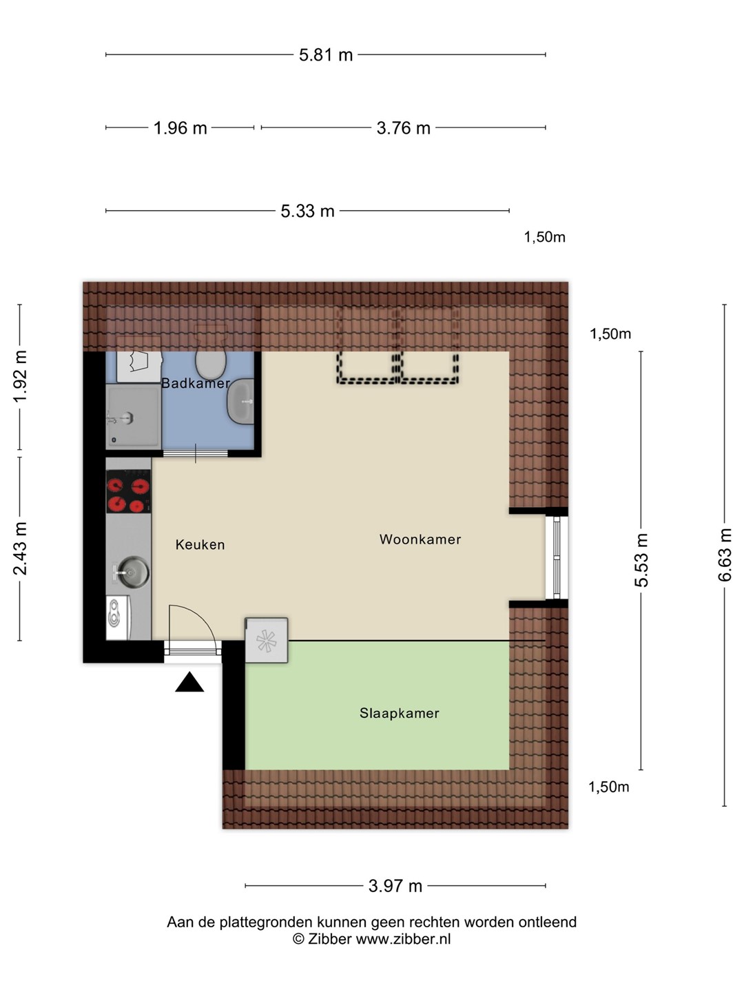 Met een woonoppervlakte van circa 27 m² is dit appartement slim ingedeeld en verrassend licht. De hoge openslaande ramen zorgen voor veel daglicht en geven de woning een ruimtelijk en karaktervol gevoel. De woon- en slaapruimte vormt een sfeervol geheel waarin je comfortabel kunt wonen en ontspannen.