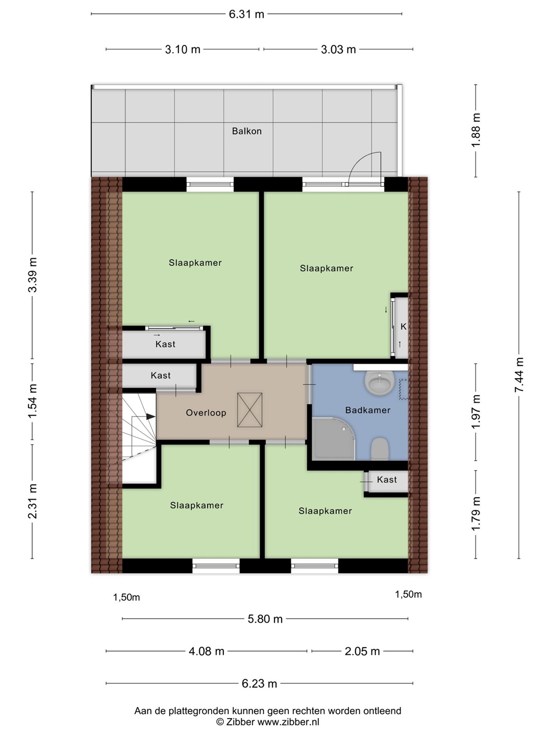 De badkamer is voorzien van een douche, wastafel en toilet. Daarnaast is er via een van de slaapkamers toegang tot het balkon aan de achterzijde van de woning.