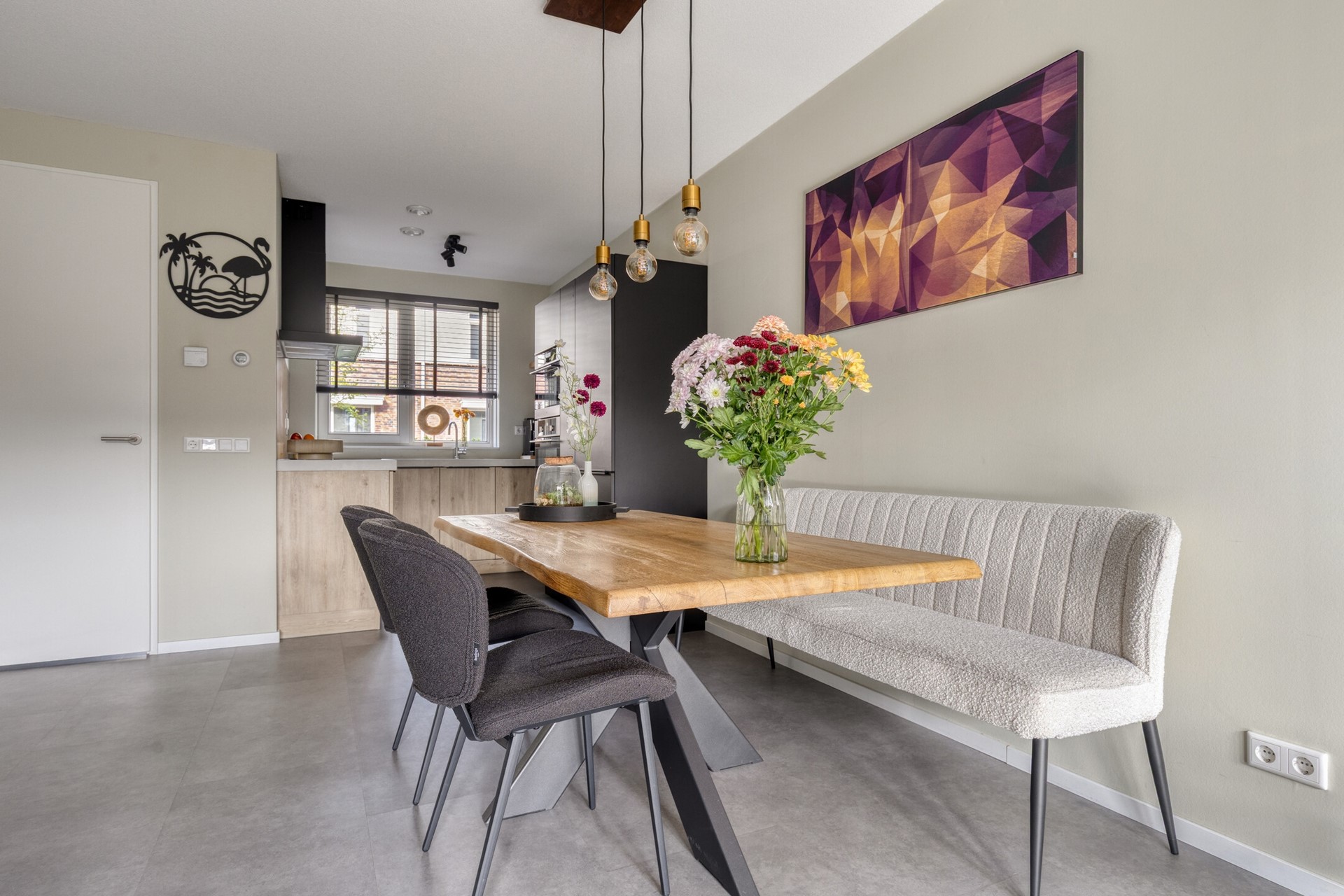 Zodra je binnenkomt, voel je het meteen: dit is een huis waar alles klopt. De sfeervolle woonkamer is heerlijk licht en ruim opgezet, met volop plaats voor een royale zithoek en gezellige eettafel. Dankzij de openslaande deuren loopt binnen moeiteloos over in buiten en stap je zo de zonnige achtertuin in.