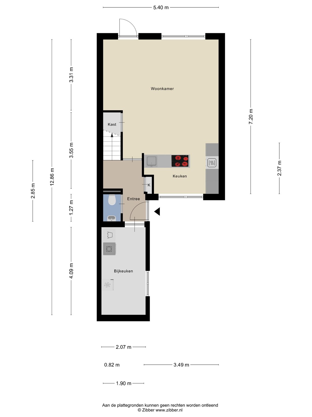 • De achterste 2 meter grond van de tuin is gemeente grond en te huur voor € 85,- per jaar